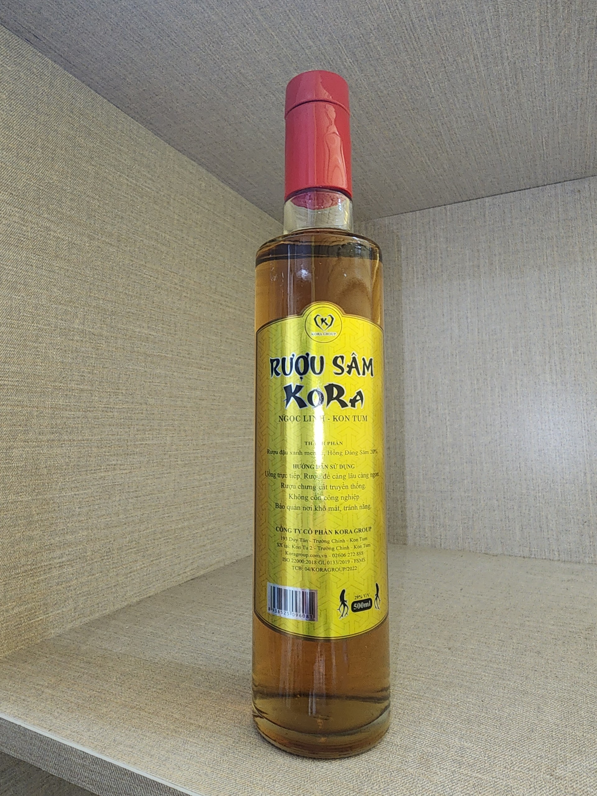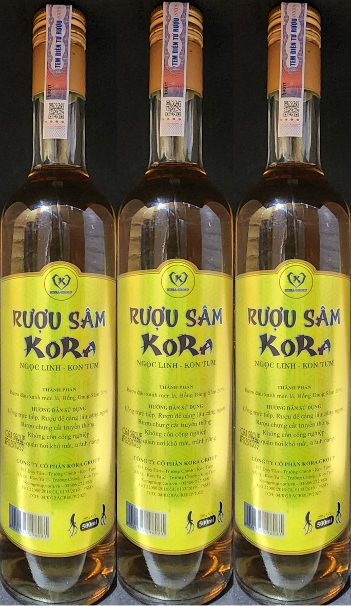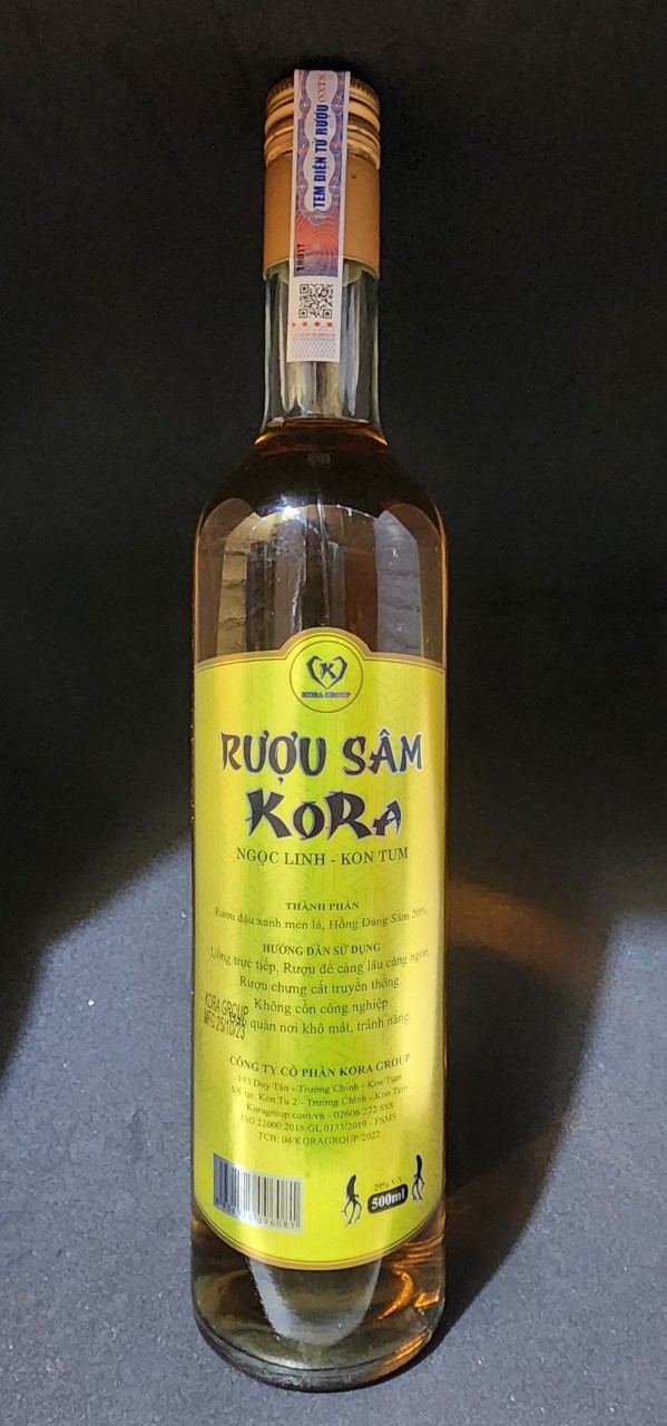 Sản phẩm được lên men từ Đậu xanh, gạo Nếp bởi men lá thảo dược đặc trưng vùng Cao nguyên Kon Tum, Rượu được chưng cất truyền thống, không cồn công nghiệp và được Ủ với 20% Hồng Đảng Sâm Khô.